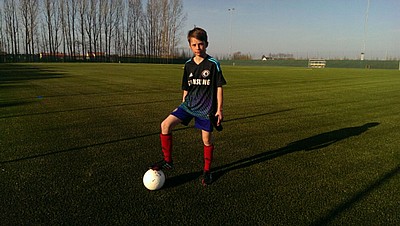 Axel Svensson P03 (på bilden) tog tillsammans med Julia Bladh (ej på bild) BFK F03 , det första spadtaget i fjol. Nu är det dags att för de båda duktiga spelarna och deras vänner att få lira boll på den nya planen!